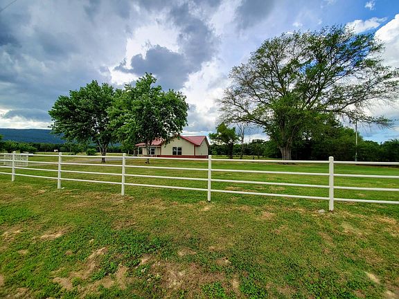 This Charming Country Home is a newly constructed home located in a nice location with 360-degree views of open fields and mountains. With 3 bedrooms and 2 bathrooms, this 1300 Square foot home is complete with all new appliances and is move-in ready just waiting for its new owner. The home has laminate flooring through-out and carpet in the three bedrooms. The kitchen boasts granite counter-tops, brand new matching appliances, and soft-close solid wood cabinetry. The living room as well as the master bedroom have vaulted knotty pined ceilings. Both bathrooms are full baths and have granite vanities and soft-close solid wood cabinetry. The master bedroom also has a walk-in closet. All of this on 1.68 Acres in the country with piped fencing and a gated entrance. Located on a black-top county road. This Charming Home is in a very nice location, only 2.5 miles from the town of Talihina and only 1.5 miles from the Choctaw National Health Care Hospital.