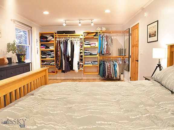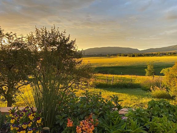 This home is only a few minute drive to downtown Bozeman but it feels like it is out of town with views of mountains and wheat fields. The backyard opens to open space and trails. The house was remodeled in 2016 and gets beautiful morning light and has a large wrap around deck. The upstairs has 2 bedrooms, the main bedroom has a double door accessing the deck. The main bathroom has radiant floor heat with an extra large bathtub with marble surround and a separate custom shower has dual shower heads. The third and fourth bedrooms are downstairs adjacent to a 3/4 bathroom. Downstairs there is a large exercise / play zone / media room that also gets nice morning light. The kitchen has newer stainless steel appliances. There is an attached two car garage. The home is powered by grid-tied solar which covers around 90% of the homes electrical use and has central air conditioning. There is an in ground automatic sprinkler system and the front yard is private with mature trees and a hedge.