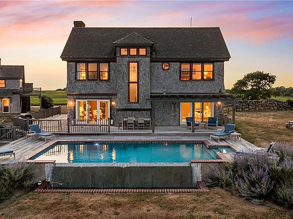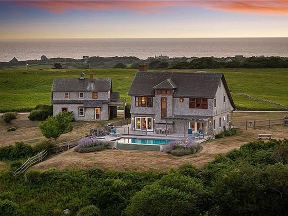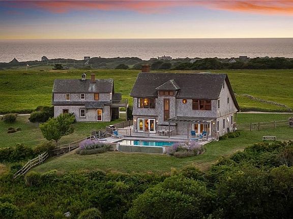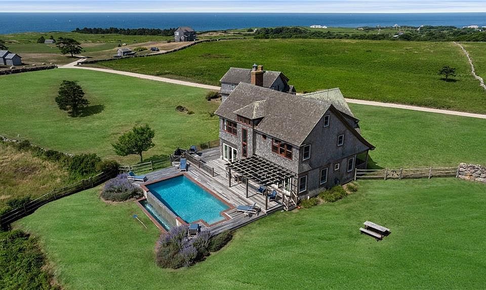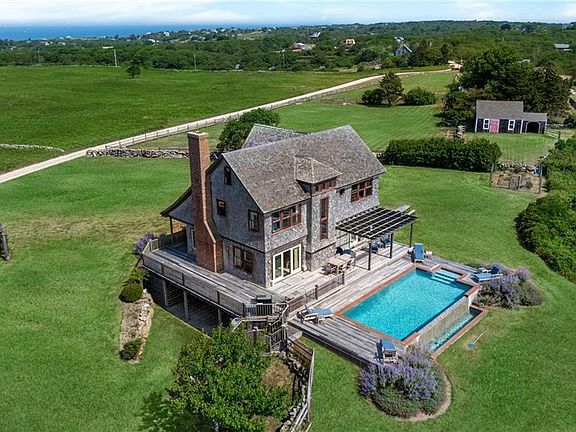 This residence at 1328 Cooneymus Road is part of the storied Lewis Farm, a property woven into Block Island’s conservation history. In 1982, William P. Lewis II, whose family had farmed this land since the early 1800s, made the extraordinary decision to protect over 150 acres for preservation. His vision, supported by conservation groups and the State of Rhode Island, ensured this extraordinary landscape of meadows, stone walls, and dramatic ocean views would be safeguarded for future generations. Today, the home embodies that legacy. Set within this conserved expanse, the 4-bedroom, 4.5-bath residence offers sweeping views across rolling fields to the Atlantic Ocean. Designed in the Island’s timeless shingle style, it features expansive windows and porches that bring the outdoors in, along with a pool and deck perfectly positioned for the western light and spectacular sunsets that define this part of Block Island. Inside, open living spaces and thoughtful architectural details create a home as inviting as its surroundings. A guest cottage and 4-car garage provide extra accommodations and ample space for your Island essentials. Ownership here means not only enjoying privacy and natural beauty but also becoming part of the enduring story of Lewis Farm—a place where history, conservation, and community converge. The conservation easement ensures the land’s character remains unspoiled, preserving the pastoral landscape that makes this property one of the Island’s most treasured.