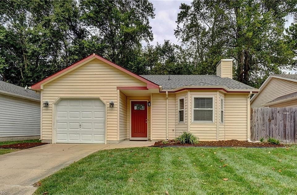Nestled deep in the desirable Redwing neighborhood, this charming one-story home has been beautifully updated. You’ll love the sense of openness in the spacious living room with its high ceiling and wood-burning fireplace, perfect for chilly nights. The large kitchen will impress you with lovely cabinets, soft-close pull-out drawers, tile backsplash, recessed and under-cabinet lighting, a coffee bar, and a bay window that provides wonderful natural light and the perfect space for a table. The primary bedroom includes a walk-in closet and a renovated attached bath. The hall bath is also beautifully renovated. Enjoy outdoor gatherings and relaxing on the wood deck in the private yard backing up to trees. An attached one-car garage plus a storage shed provide parking and ample storage options. Replacement roof, windows, doors, and more! Close to restaurants, parks, shopping, Oceana, and the oceanfront, this is a home not to be missed!