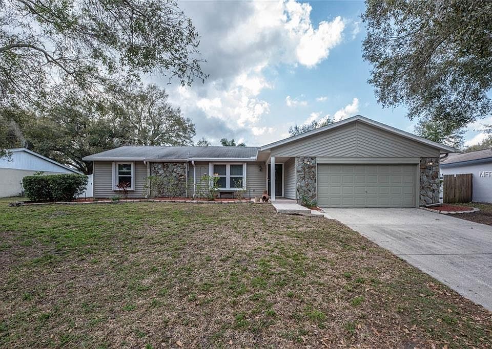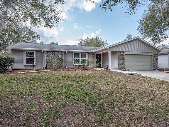 Lovely 3 bedroom home features 1650 + sq ft, family and living room, eat-in-kitchen, formal dining, Corian counters, laminate flooring, large master bedroom (20x13), walk-in-closet, shower/tub combo, split bedroom plan, inside utility, French doors, fireplace, crown molding, all window treatments and appliances , double pain windows, vinyl siding, 2 car garage with shelving, fenced yard, screened lanai, sprinkler system, no HOA fees. This beauty is priced to sell.