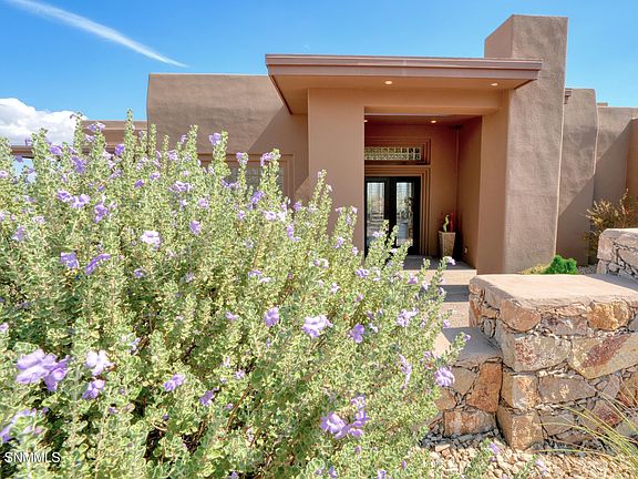 Welcome to this breathtaking custom-built contemporary home nestled in the prestigious Picacho Mountain community. This 3-bedroom, flex room, 3-bath masterpiece offers nearly 2,900sf of luxurious living space on a generous 1.1-acre lot. Designed with a split floor plan, the home blends modern elegance with everyday comfort--featuring sweeping Organ Mountain views that will leave you in awe. Step inside to a spacious open layout with clean architectural lines, abundant natural light, & custom finishes throughout. The gourmet kitchen is a chef's dream--complete with double ovens, extensive counter space, ample cabinetry, & a layout perfect for entertaining. The outdoor living space is an entertainer's paradise, featuring a built-in wood-fired pizza oven, dining area with firepit, hydrotherapy hot tub, & beautifully landscaped grounds. Inside, you'll love the thoughtful storage solutions & attention to detail in every room. This home has been meticulously maintained & includes solar panels that dramatically