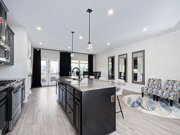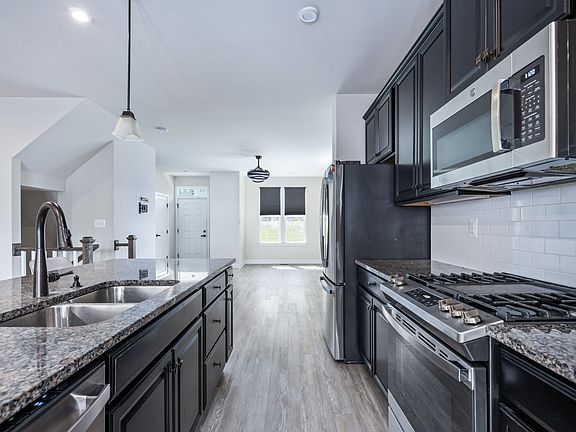 Discover this exceptional townhome in Fredericksburg, distinguished as the largest end-unit within the community. This residence features an expansive open-concept design distributed across four finished levels, complemented by a spacious garage. The main level includes a welcoming living room that seamlessly connects to a gourmet kitchen and dining area. The kitchen is equipped with a large island, granite countertops, stainless steel appliances, a gas range, and a pantry, making it suitable for both daily living and entertaining guests. From the dining area, residents can access a generous composite deck, ideal for outdoor gatherings and leisure activities. The first upper level offers a spacious primary bedroom with a walk-in closet and an en-suite bathroom featuring double sinks, a separate walk-in shower, and a soaking tub. This level also includes two additional bedrooms, a full bathroom, and a laundry area. The second upper level presents a versatile space with a built-in bar, a full bathroom, and access to a rooftop terrace, perfect for relaxation or hosting social events. The lower level comprises a family room, additional storage options, and an attached garage, enhancing the home's overall functionality. Conveniently situated near the VRE station, shopping centers, restaurants, and Interstate 95, this property offers a combination of modern amenities and practical design.
