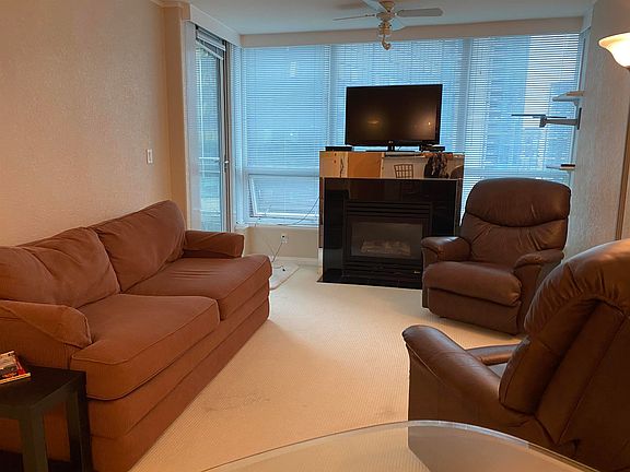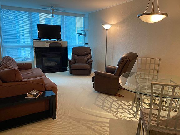 recently renovated laminate flooring and a cozy gas fireplace in the living room. Modern kitchen with stainless steel appliances, a gas cook-top & sleek granite counter tops. The den offers a small, functional workspace or in-suite storage. Meanwhile, the spacious balcony invites you to unwind with panoramic views of the marina, mountains, and city skyline. The rent includes in-suite laundry, 1 parking and storage locker! The Classico offers a gym, hot tub, steam room, swimming pool, party room, and a guest suite. This corner suite offers both tranquility and walkable access to everything the city has to offer. It is just a short stroll to the downtown business district, steps from the Seawall, Robson Street, parks, and countless cafes and restaurants. **No Smoking - No Pet**