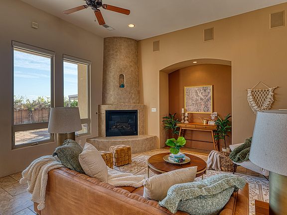 Grande Open Oct 12, 1-3p and Oct 13 2-4Elegant Trinity Estates Tuscan features quality craftsmanship, bright, light, so many big windows, tile / membrane roof, gated front courtyard, city and peek-a-boo mountain views, lush back patio. Stunning travertine floors, 2 classic kiva fireplaces--one in open great room and one in owner's suite. Spacious chef's kitchen - counter bar seating for 8, dining, corner pantry, circular skylight, gas stove, custom hood, granite countertops, custom cherry cabinets, stainless steel appliances. Owner's suite features spa bath, large walk-in closet, sep shower, new soaking tub. Built-in surround sound, outdoor grill and outdoor pergola. Neighborhood access to miles of paved view laden trails; 3 blocks to Intel, 5 min to Cottonwood Mall, 25 to Intl Airport