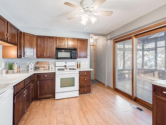 Seller has spared no expense in updating this very sharp very clean rambler in sought after “Oak Creek Estates”. Some of the many features include; a Open concept 20x12 kitchen with a butlers bar, sliding glass doors that lead to a sun drenched vaulted 15x14 3 season porch with access to a deck over looking a private and park like backyard with shed. This home offers newer siding and windows, fresh paint throughout and 2 fireplaces. The lower level has a generous sized family room, additional bathroom and bedroom along with a entertaining bar area. Additional features include, a whole home fan, newer mechanicals and plenty of storage. Located just steps to parks, trails and conveniently close to shopping, coffee shops and restaurants. All the hard work is done, simply move in and enjoy!