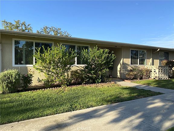 (M12-34D)(Carport 146-Space 12) This unit is located on a wonderful greenbelt in beautiful Mutual 12. Don't miss out on this location! There is a combo washer/dryer unit for your convenience. Fully expanded unit with newer flooring, dual pane windows, plantation shutters, and central heat/ air conditioning. Wide open, and light and bright with skylight in the living room and den (louvered skylight covers)... and skylights also in the kitchen and bathroom. Walk-in Closet in main bedroom. Mirrored closet in den. Leaded glass door with hidden screen and entry side window. Tiled porch. Huge Living and Dining- open concept. Please excuse our packing and estate sale set up.