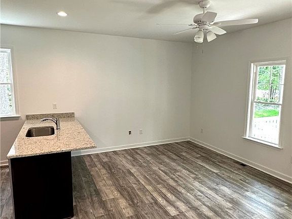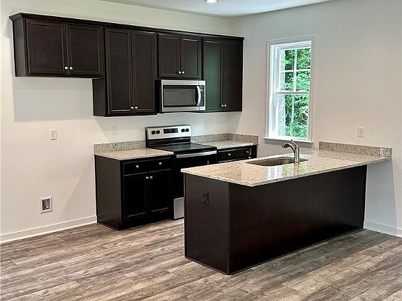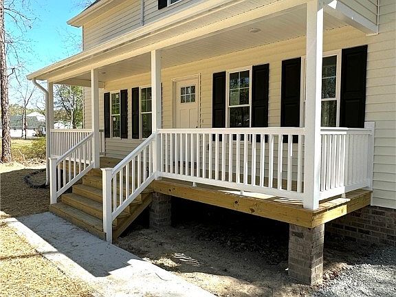 Low maintenance 2 story just completed! First floor primary bedroom with closet and walk-in bathroom. Double vanity and shower. Open kitchen with granite counter tops, 42 inch espresso cabinets, and microwave/range combo. Recessed lighting. Family room with 9 foot ceilings. The second level offers 2 bedrooms and a full bath.(pull down attic storage). Full front porch, sidewalk, and rear deck. Dual heat pumps. Vinyl siding with 30 year dimensional roof. Private lot with no HOA.