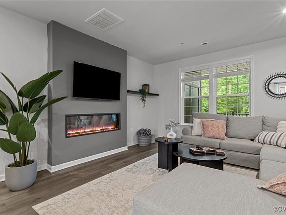 Enjoy modern living in this upgraded 2023-built home in Coalfield Station! This spacious 2,208 sq ft condo offers 3 bedrooms, 2.5 baths, and a versatile open floor plan with 9–10 ft ceilings and luxury finishes throughout. The stunning kitchen boasts quartz countertops, a large island, and upgraded GE appliances (all electric, 2023). The cozy living area features a newly installed electric fireplace, perfect for relaxing evenings. Additional highlights include luxury vinyl plank flooring on the main level, tile in the upstairs bathrooms, and carpet in the bedrooms. The electric HVAC and water heater were also installed in 2023. Two walk-in closets provide ample storage. Window treatments convey. Home includes garage, driveway, and street parking. Enjoy the community’s playground, park, and grilling area. HOA covers roof, exterior maintenance, water, sewer, trash, and more. Attic access by ladder; not usable. This beautifully maintained home is move-in ready and open to a quick closing!