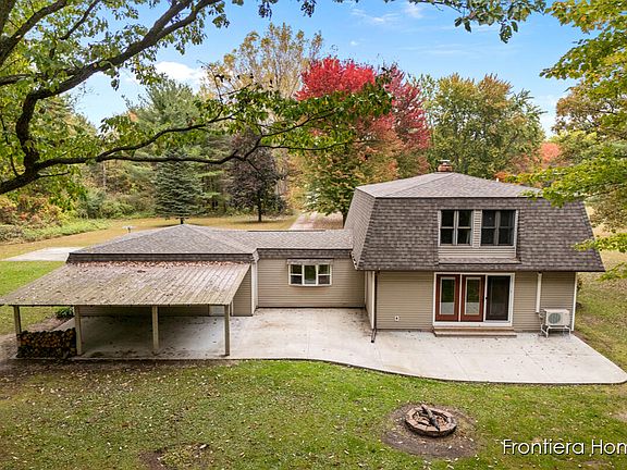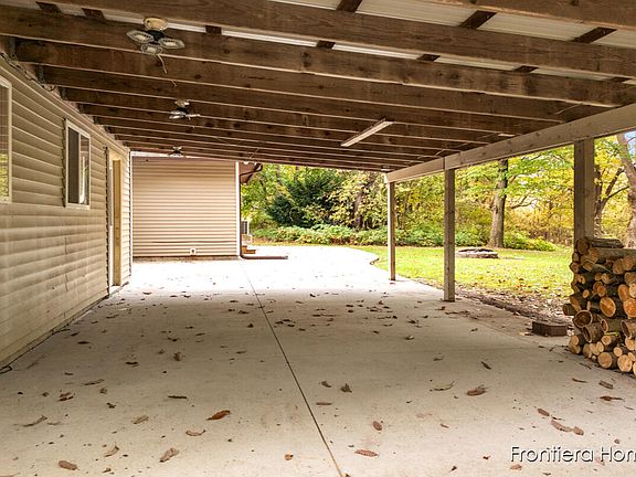 Recent updates include a new septic field (2019), newer water heater, three brand-new patio doors, a wide and deep concrete patio spanning the entire width of the home and garage, a new roof (2021), and a ductless mini-split A/C system on the main floor for year-round comfort. Enjoy blazing-fast fiber internet by Spectrum-yes, even out here in the country! Additional highlights include a clean and full finished basement, an attached 2-car garage with a huge extra cement parking pad, a covered cement floor lean to behind the garage, and a spacious shed for tools and toys. Step outside and relax by the firepit, surrounded by towering trees and nature's serenity.