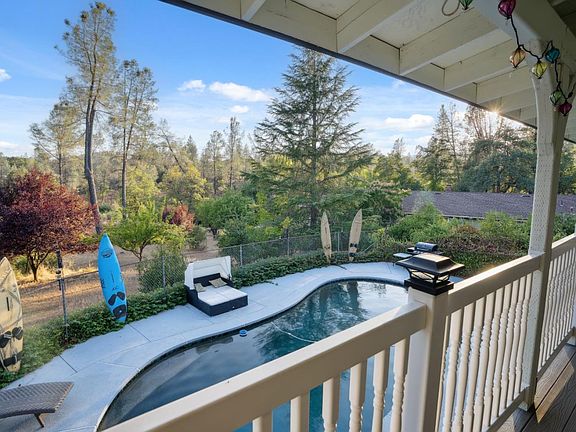 Discover easy living in this expansive Ranchera Pines Neighborhood estate. This spacious 2500sqft+- 3-bed, 3-bath home features separate living and family rooms, large bedrooms with ample storage, and a finished basement providing versatile space for any lifestyle. Enjoy the outdoors with a wrap-around covered patio overlooking the pool deck, offering stunning acreage views that impress in every season. The convenient pool-level walkout basement includes a third bathroom just steps from the pool. Inside, the light and bright kitchen flows seamlessly into the dining area, showcasing craftsman finishes and built-in cabinetry in this well cared for home. This 1-acre cul-de-sac parcel is nestled in a well-established neighborhood near Shasta Dam, offering a peaceful country feel with the convenience of Shasta Lake City limits. Recent neighborhood upgrades, including widened and re-paved roads and additional fire hydrants, provide enhanced safety and comfort. Additional home upgrades include pool deck resurfacing, a new HVAC unit, vinyl flooring in the basement, and some septic system enhancements. Don't miss the opportunity to own this exceptional property - it truly has it all!