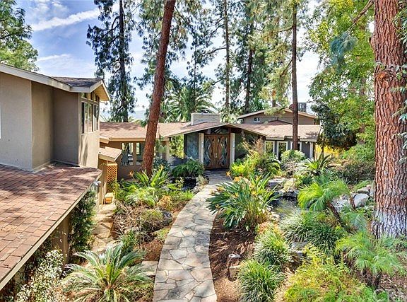 A 360 degree view awaits you in this updated Modern Ranch Style split level home. Perched atop the old Canyon Crest Park (now Smiley Heights) nestled among mother natures aged greenery. Whether you were looking for a tranquil retreat or an elegant place for friends and family to gather, this home offers it all. After walking past the trickling water falls,Koi Pond and entering through the custom stained glass and wooden front doors, be prepared to embrace the beauty of Redlands, San Bernardino Mountains and San Timoteo Canyon. The ceilings wood and wood beams lead you to windowed walls and endless views from every room. The Kitchen is adorned with Blue Louise Granite from Brazil, rich walnut cabinets and detailed Norwegian Ash flooring. As you exit the Kitchen through the sliding glass doors onto the low maintenance composite deck, you overlook the turquoise landscaped pool. This beautiful home offers 3 Bedrooms with possibilities of a 4th bedroom, 2 1/2 baths, formal Dining Room, Family Room with 360 degree views, stainless steel kitchen appliances and did we mention the VIEWS!!!!