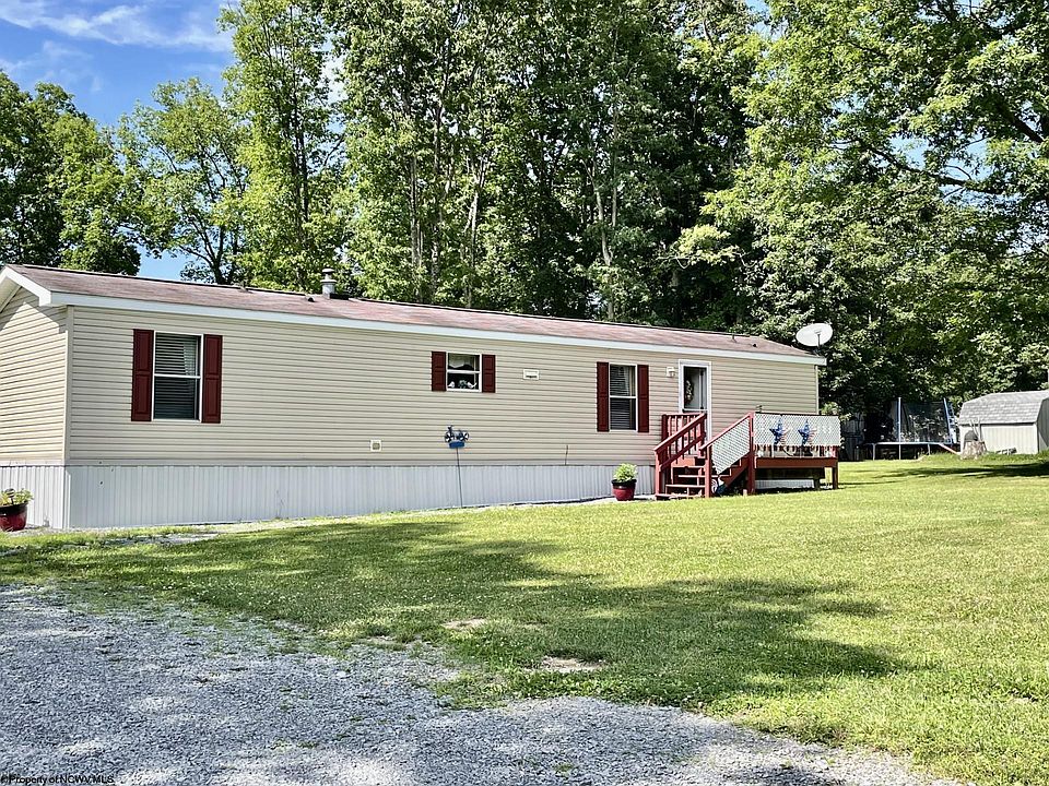 Update single wide in beautiful condition! 60 x 20 garage on 2+ Acres! Home has been updated flooring, appliances, paint, trim and New Air Conditioner! Being sold furnished! Large Covered rear deck. Mature trees and level yard. Garage is fully furnished with mower and tools included can be used for Mechanic's garage or workshop area. Has City water and septic system. Has hook ups for RV Pad included. Great location from Morgantown or Kingwood.