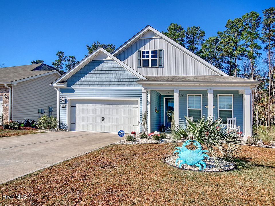 Welcome to the Arlington plan in the highly sought-after community of The Farm in Carolina Shores, NC! This thoughtfully designed 4-bedroom, 3-bath home offers an open-concept layout perfect for both daily living and entertaining. The spacious kitchen, living, and dining areas flow seamlessly together, highlighted by off-white painted cabinetry, a tile backsplash, and elegant granite countertops. Stainless Whirlpool appliances, including a side-by-side refrigerator, a large island with a breakfast bar, and a generous pantry complete the kitchen. Wide plank laminate flooring throughout the main living areas offers the look of wood with low-maintenance durability.