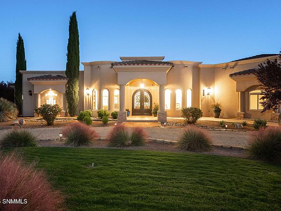 Experience sophistication, and unmatched craftsmanship in this exquisite 4,155 sq. ft. custom estate, ideally situated on 1.3 acres on a cul-de-sac in the prestigious Greyfox gated community. -10 to 17 ft. ceilings-Abundant natural light-Exceptional architectural design-Three fireplaces-Expansive windows and beautiful Organ Mountain views-Formal dining room-Spacious family room opens seamlessly to the gourmet kitchen which showcases large center island with wine refrigerator, granite countertops, custom cabinetry, and premium appliances-Dedicated home office/library-Primary suite with direct access to the outdoor living area-Spa-inspired ensuite bathroom - dual vanities, a jetted soaking tub, an oversized walk-in shower & expansive custom closet -All bedrooms - walk-in closets-Custom tile flooring & new upgraded carpet in bedrooms-3 car garage-Pool and mature landscape-Recent: fresh interior paint, new elastomeric roof coat