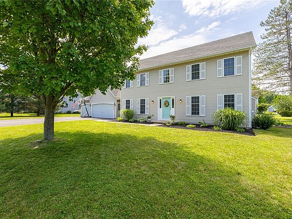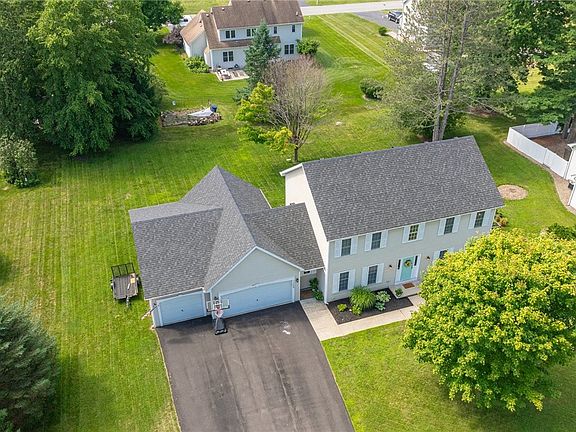 Very well cared for 4 bed 2 & a half bath home located in Webster. This home offers plenty of space inside & out with many updates that have already been done. Entering in the front door, is a bright two story foyer. The entire interior has been recently painted. The kitchen has been updated complete with new appliances, hardware, pantry, light fixtures, granite countertops & flooring that carries into the 1st floor laundry & half bath. The new single pane full lite door leads from the kitchen out onto the new paver patio (2022). Generous sized living room that is lined with windows that bring in an abundance of natural light. New carpet throughout the living spaces & upstairs (2021). Off the living room is another family room with a tray ceiling. The formal dining is being used as a home office complete with french doors. Upstairs you’ll find a primary bedroom updated with a board and batten wall, light fixtures & window treatments, primary bathroom & walk-in closet. 3 more generous sized bedrooms & another full bath complete the upstairs. The granite countertops carry throughout all the bathrooms. Oversized 3 car garage New driveway 2023 New roof (2019) Del Neg 7/23 3pm.