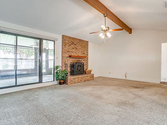 Charming Benbrook Ranch! This 3-bedroom, 2-bath home offers 1,448 square feet of inviting living space. Lovingly maintained and move-in ready, it features a kitchen with granite countertops and updated stainless-steel appliances. The large living room is highlighted by a vaulted ceiling with an exposed beam ceiling, and the wood-burning fireplace, creates a warm, welcoming atmosphere. The dining area flows seamlessly into the living space—perfect for gatherings with friends and family. The primary suite includes an oversized ensuite bathroom with an updated shower, separate soaking tub, 2 walk-in closets, and a dual-sink vanity. Split from the primary, the additional bedrooms share an updated full bath. Just off the living room is a private sunroom, complete with a pet door for convenient indoor and outdoor access. The sunroom opens to a tree-shaded backyard, ideal for quiet mornings. The back patio offers a covered area for your outdoor grill or smoker, plus a designated space with a hook-up for a hot tub. A storage shed provides room for landscaping equipment, extra storage, and DIY projects. Come see for yourself why this well-cared-for home is a true Benbrook gem!
