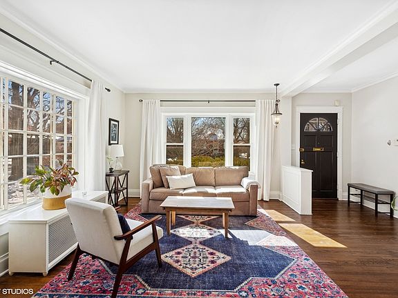 Don't miss this beautifully updated farmhouse with 3+ bedrooms in a fantastic location! Step inside to a bright and spacious entryway that flows seamlessly into the expansive living room, complete with built-ins, high ceilings, and plenty of room for entertaining or relaxing. Large, newer windows flood the space with natural light, creating a warm and inviting atmosphere. The dining room, featuring a charming built-in, easily accommodates a large table and sits conveniently off the open kitchen, which boasts stainless steel appliances and ample workspace for the home chef. A full bath on the first floor was renovated in 2020, showcasing a stylish new vanity, a tub/shower with a tiled surround, and updated flooring. The main bedroom is generously sized, with elegant French doors leading to a lovely pergola and a spacious, fenced backyard. Upstairs, you'll find an updated half-bath, two large guest bedrooms, and a versatile tandem family room/den-easily convertible into a third upstairs bedroom. The recently remodeled basement (2022) offers recessed lighting, new flooring, and flexible space perfect for a media area, home gym, ping-pong, office, or whatever suits your lifestyle. Outdoor living shines in warmer months with a large deck, a charming pergola, and plenty of space for gardening or play. Additional highlights include a two-car garage, newer windows (all but four replaced in 2019), two skylights for abundant natural light, and numerous updates such as a new roof and gutters (2023) and a new boiler (2022). Enjoy the convenience of walking to Washington School and the new Robert Crown Community Center, which offers sports fields, ice rinks, a gym, and a library. A wonderful home in an unbeatable location-love where you live!