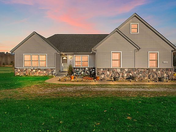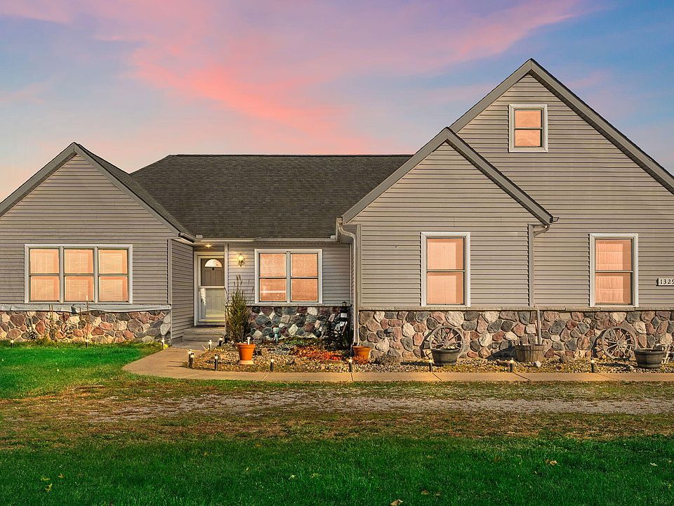 Nestled on 5 private acres, this spacious ranch offers four bedrooms (potentially five) plus a dedicated office and three bathrooms, with the convenience of an attached three-car garage and a detached two-car garage for hobbies, storage, or a workshop. The bright, open living spaces flow effortlessly to a well-appointed kitchen, while the split-bedroom layout provides privacy and comfort. With almost 2900 square feet of additional finished space, this home offers even more versatility and living area. Enjoy tranquil outdoor surroundings and room to roam, all just seven minutes from the Dunes National Lakeshore and five minutes into town--off the beaten path yet close to shopping, dining, and services. This versatile home is ideal for remote work, multi-generational living, or entertaining family and friends, combining country serenity with easy access to everyday amenities.