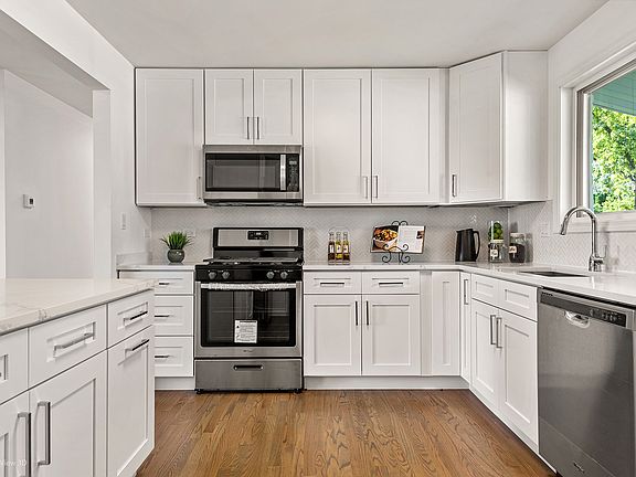 Completely updated home on a large lot with huge back yard! Kitchen with shaker cabinets, quartz counters, herringbone backsplash, stainless steel appliances. Also has eat in area plus bar seating that opens up into the family room. Spacious bathroom with double vanity. Hardwood floors throughout entire home and brick paver patio. Close to park and schools! Located in top school districts with potential for long term tenants.