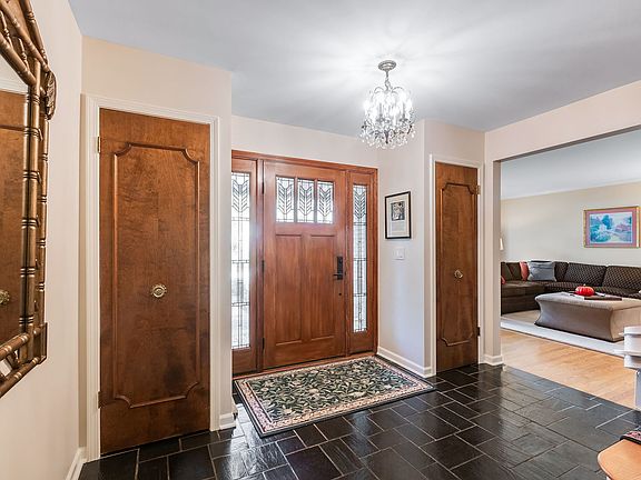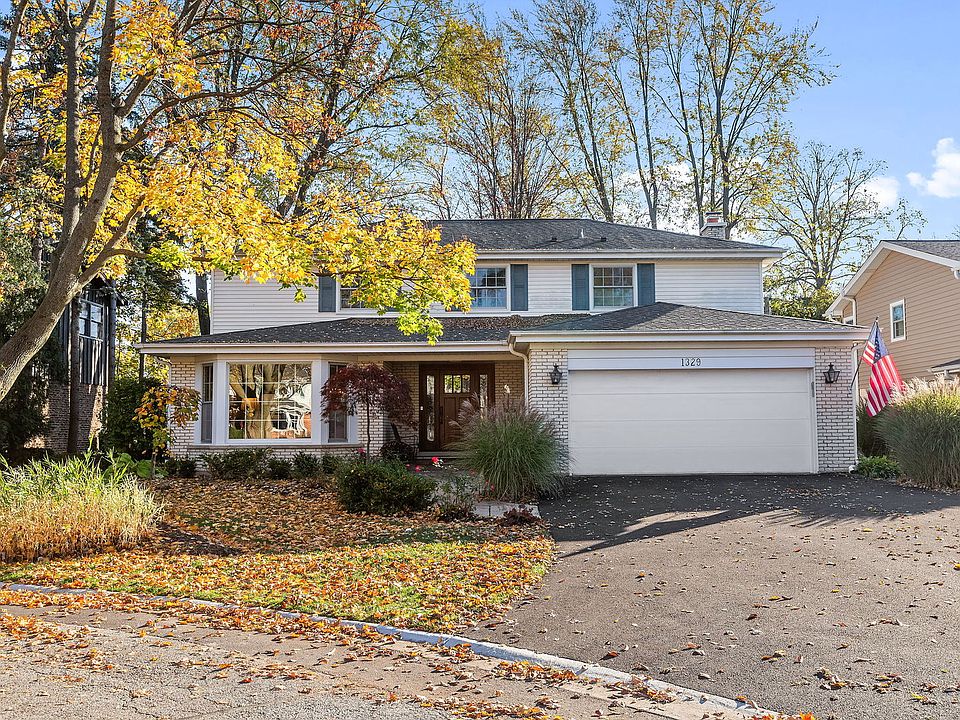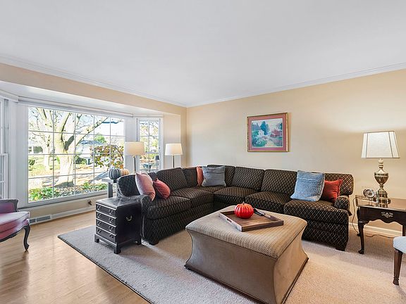 This beautifully updated Bonnie Glen Colonial offers a perfect blend of classic charm and modern convenience, located on a quiet cul-de-sac in East Glenview. Here's a breakdown of the highlights: Welcoming unilock front porch leads to a wide center entry foyer with double coat closets. Spacious living room with hardwood floors, a large bay window for natural light, and crown molding, creating a bright and airy atmosphere. Perfect dining room for entertaining, featuring a chair rail, crown molding, hardwood, and a center chandelier. The eat-in kitchen boasts white cabinetry, Corian countertops, and some updated appliances. A breakfast bar, large pantry, space for a table, and sightlines to the family room make it both functional and inviting. Generously sized family room with crown molding and a wood-burning fireplace with stone surround. A sliding door leads to an expansive Trex deck, complete with built-in benches and a grill - ideal for outdoor living. A spacious mud/laundry room with plenty of storage, a full-size washer and dryer, a sink, and access to the attached two-car garage. A serene primary retreat with four closets, including a walk-in. The recently updated en-suite bathroom features luxurious marble decor, heated floor, a curbless steam shower with a teak bench, built-in speakers, a comfort-level white vanity with quartz countertop, and a modern Bluetooth medicine cabinet. Updated Hall Bathroom features beautiful floor tile, a wood double-sink vanity with quartz countertops, and a stand-up shower with tiled walls and a glass door. Finished Basement adds even more living space, perfect for a recreation room plus additional storage. This home's thoughtful updates and attention to detail create a welcoming and functional living space, perfect for both everyday living and entertaining. Plus, the location in the desirable Bonnie Glen neighborhood offers a walk-to-town location. Additional Features: 2020-New Roof 2024-New asphalt driveway 2023-New sump pump and back-up 2022-Primary Bathroom Renovation - Includes heated marble floor, fold down Teak bench, Mr. Steam steam shower with stereo/bluetooth, and Robern medicine cabinet with bluetooth 2022-Hall Bath Renovation New Anderson Windows in two bedrooms and two bathrooms 2012- New Trex Deck 2021- New AC Condensor 2022- New 75 gallon hot water heater 2010-New Furnace 2018- New humidifier 2017- Us Waterproof Drain Tile in Basement