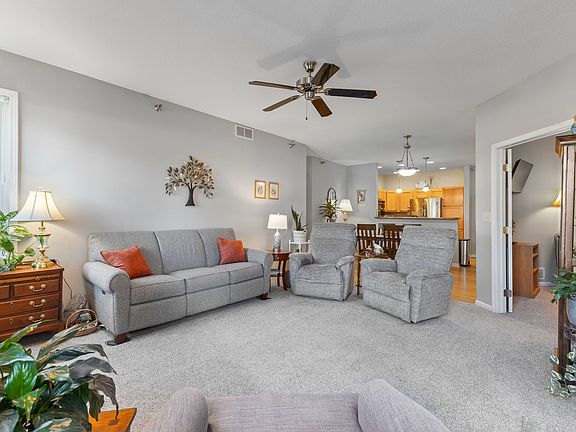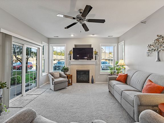 Spacious Ground-Floor Condo in Prime Waukee Location! Enjoy easy living in this beautifully updated 3-bedroom, 2-bath condo with 1,328 sq ft of open-concept space. The bright and airy layout features high ceilings, large windows, and fresh 2023/2024 updates including new paint, laminate flooring, carpet (living room & primary), windows, and window treatments. The inviting living room offers a cozy, gas fireplace and flows seamlessly into the dining area and kitchen with stainless steel appliances. The primary suite includes a full bath with double sinks, a walk-in closet, and private access to the covered patio—also accessible from the living room. Two additional bedrooms and a full bath are thoughtfully located on the opposite side of the unit for added privacy. Convenient in unit laundry room. There is an attached garage just steps from your front door. Secure building located across from the community clubhouse, pool, fitness center, and picnic shelter. Close to shopping, restaurants, and everything Waukee has to offer!
