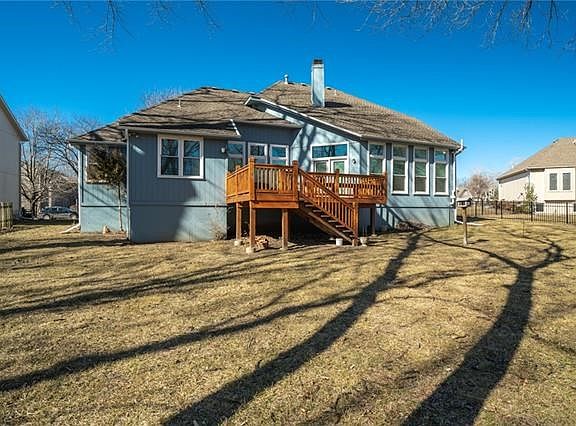 This remarkable 1.5 story sits on the most gorgeous lot ever! On a .8 acre lot that has Oak, Ash, Maple and Elm Trees, you will be able to look out at the tree line and have some privacy. You will love having your master suite on the main level as well as the laundry, den, dining room, large kitchen with hearth area. The fireplace sees through from great room to the hearth room. Back of house has lot of windows to enjoy the view. Upstairs has a loft area, 3 nice size bedrooms and it's own full bathroom. If you want even more space, you have a finished lower level with a wet bar, another full bathroom and even a large storage area or additional space for work out room or craft room. This home has a 3 car garage. Updates in the last 10 years include new triple pane windows, roof, deck replaced, 95% efficiency HVAC. Basement square footage is around 1100 square feet. Current schools include Longview Farm Elementary, Summit Lakes Middle School and Lee's Summit West High School. 2022-02-17