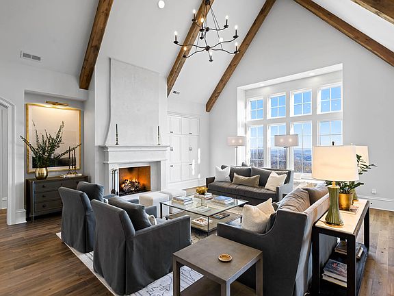 Exquisite, chic, custom. 1329 Sunset Drive is beautifully positioned on a 3 acre brow lot with views of Downtown Chattanooga, Lookout Mountain, and the Tennessee River. This newly constructed home has details and amenities to wow the modern buyer. Entering the main foyer, one is greeted with lofted, beamed ceilings, gold-toned lighting, rich hardwood floors, and lots of natural light. Just beyond the foyer is a living room lined with windows facing the brow view. The custom fireplace and built-in wall cabinetry are few of the many impressive details in this space. Lofted ceilings allow natural light to flow freely and openly in the room. The open concept chef's kitchen and dining room are adjacent to the living room. No details have been spared. From gorgeous overhead lighting, to custom cabinetry from Scarlett's, to the large quartzite island, this is a space made for entertaining large family gatherings. Open the large sliding glass doors to the upper patio area with wood burning fireplace for more flow and areas to entertain. Also on the main level is the primary bedroom suite. This space boasts gorgeous mountain views, an opulent fireplace, and custom built-ins. One of the most remarkable features is the grand-scale primary closet with ample storage and beautiful custom details. The primary bathroom features a soaker tub, large steam shower, heated floors, artful lighting, and his/hers water closets. There is also a study and guest bedroom suite, mudroom/foyer and laundry room on the main level. Be greeted by the lower level of the home with family rec and media rooms. Within the media room is a bar that features quartzite countertops, brass, and glass shelves as well as a window allowing a view into the wine cellar located just behind the bar. There are three additional bedroom/full bathroom suites on the lower level as an addition to the entertainment spaces along with a lower covered patio with wood burning fireplace. The lower patio leads down to the swimming pool with stone and hot tub features. There is also a dedicated half bath for the pool. Nearly every room in the home has a brow view, and with a couple of unfinished spaces on the lower level, this home has the spacial potential for additional storage and/or desired finishings. This Signal Mountain beauty is a must-see! Reach out for more details or for a private tour of the home.