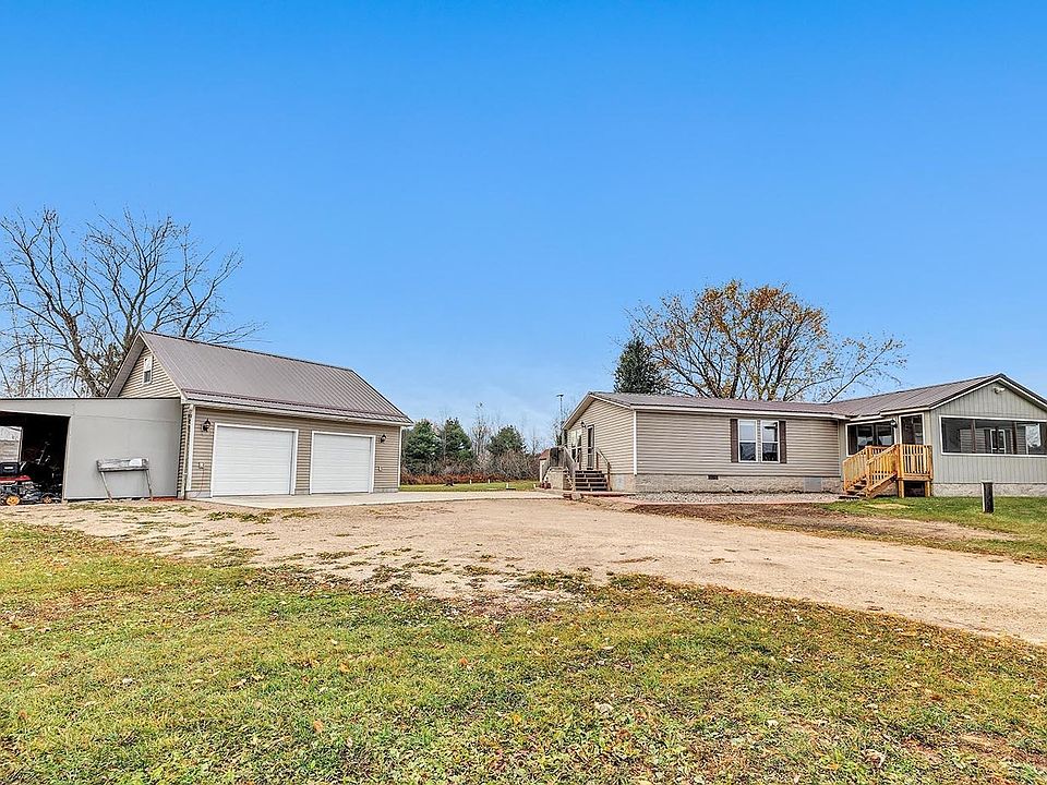 Well maintained ranch home situated on 1.51 quiet country acres within minutes to Moody Lake, Anderson Lake and Chute Pond. Enclosed 3 season porch opens to the spacious & bright living room w/vaulted ceiling. Applianced kitchen offers plenty of cabinet space, snack counter & 2 adjoining dining areas with one offering glass doors to the back deck. Main level master w/walk-in closet & private full bath. 1st floor laundry area w/washer & dryer included. Updates include steel roof, carpet, 3 season porch & paver sidewalk. 2.5 car detached garage w/finished upper living quarters w/full bath & a 14x22 leanto. 2.5 car detached all block garage has electric & 12x28 leanto. Convenient 16x14 storage shed. Close highway access for an easy commute