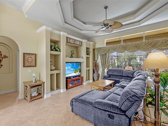 UNIQUE PROPERTY in quiet highly sought after Gulf Cove development. This stunning Contemporary Ranch style 4/3/2 is a flagship pool home with tray ceilings and numerous architectural upgrades. It is situated on a CORNER DOUBLE LOT with Direct Gulf Access via a private park and boat ramp on the Myakka River. Follow the pavers to your fully insulated 40X35 MAN CAVE!! Store your toys or work on your muscle cars, boats, etc. The hoist is already there! This is a MUST SEE to appreciate EVERYTHING!!! Intercom stereo system throughout, 3 zone AC system new 2021, On demand water heater 2022. Irrigation system installed 2021. Pool skimmer 2023. AC new 2021. MANY EXTRAS! NO HOMEOWNERS OR FLOOD CLAIMS. SOLID HOME.