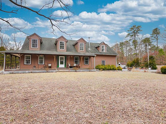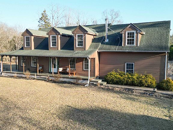 JUST LISTED! Don’t miss this custom-built, charming country Cape Cod, set on a 5-acre lot. This home is sure to go quickly! Nestled off the road down a picturesque, winding driveway, you'll discover this stunning country retreat. Who doesn’t love a wrap-around porch? This home features one that wraps around three sides! Step inside and be greeted by a spacious two-story foyer with hardwood floors. To the right, you'll find the formal dining room, also with hardwood floors. Head straight through the foyer to the great room, with soaring cathedral ceilings and French doors leading to the back of the wrap-around porch. The large kitchen is located to the right of the great room and boasts custom cabinetry, granite countertops, a breakfast bar, stainless steel appliances, and a cozy corner fireplace. To the left of the great room, you'll find the expansive main bedroom, complete with two walk-in closets and an ensuite bath with double vanities. This master suite also features a corner fireplace and French doors leading to the porch. All these rooms have beautiful hardwood floors. The first floor is rounded off with a powder room and a large laundry room with plenty of storage and extra cabinets. There are two sets of stairs leading to the second floor. The main staircase from the foyer takes you to two spacious bedrooms connected by a walkway that overlooks the great room. Another large bedroom and bathroom are located above the two-car garage and can be accessed by a back stairwell or through the second bedroom. This space would make an ideal in-law suite or second master bedroom. The home is heated by multi-zone gas heaters, with a unique backup wood-burning heating system for added efficiency. While the home is being sold as-is, the seller is installing a new heater on the first floor before closing. The expansive grounds are undergoing a clean-up.