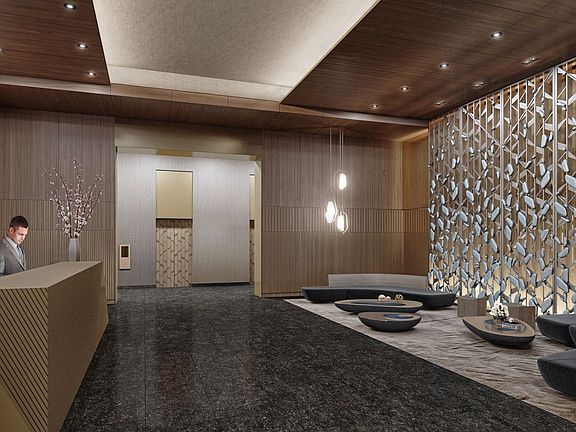 All units boast interiors by JG Neukomm Architecture. efficient layouts, elegant lines, incredible light, and views of the Manhattan skyline or lush gardens. Additional features include ceilings up to 11 feet high, French oak floors, in-unit washer/dryers, walk-in closets, baths with elegantly designed features, and kitchens with custom cabinetry and Miele appliances. Many apartments have private balconies, and studios come with the option to buy fully built out with custom furniture.
