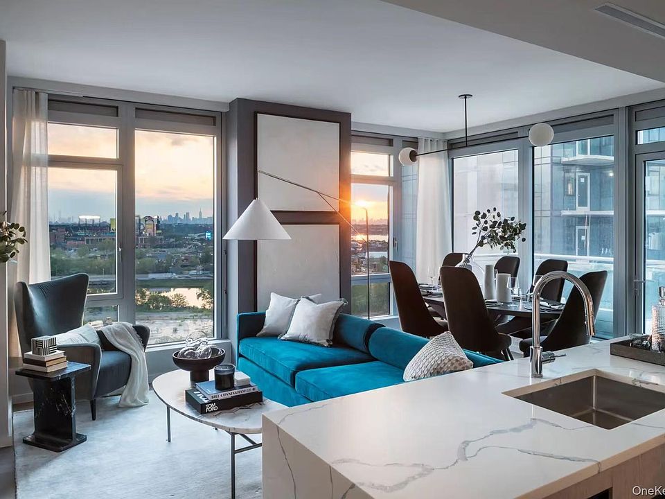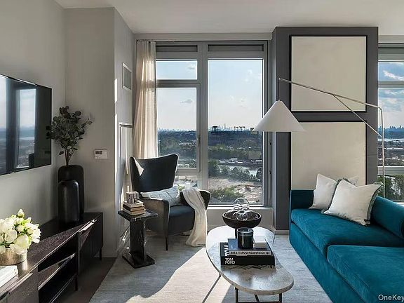 Rear to find 2 bed /2 bath corner units at south tower with 421 tax abatement . Beautiful living room with 2 huge glass wall With amazing Manhattan view & gardens view. Sunny split 2bedrooms . Open layout kitchen with modern quartzite countertops & backsplash, MIELE Appliances ,Dishwasher, Wine Cooler, French Oak Floors, Floor To Ceiling Double-Paned Glass Walls, In-Unit MIELE Washer/Dryer, TOTO bidet toilet and radiant floor heating in master. 12-year tax abatement on the property. Storage avail. for purchase. Amenities: Indoor Heated Pool, Tennis Court, Spa, Salt Room, Sauna, 2 Gyms, Yoga Room, 1.5 Acre Walking Gardens, Dog Park, Playroom, BBQ, Library, Clubhouse, Lounge, Meeting Room. 275,000 SF Retail mall underneath with food court, 4DX cinema, beer garden, shopping, Renaissance Hotel. Underground LAZ garage parking available for monthly subscription. Subway 7 train 40 min to Grand Central, LIRR 19 min commute to Manhattan PENN Station.