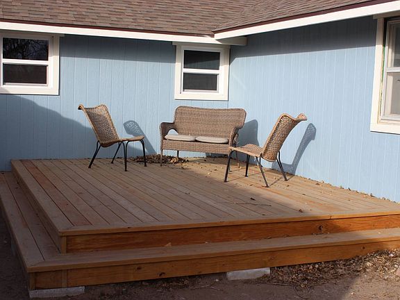 This classy property has been totally remodeled including all new electric, a new roof, new siding and so much more. The beautiful new kitchen includes new cupboards, counter tops and sink. New stainless steel appliances including the stove/range, refrigerator, microwave and dishwasher have been included in this kitchen. Hard wood laminate flooring extends throughout the entire home. The nook dining area is conveniently located just off the kitchen and provides a cozy eating area. A great bonus room is perfect for a computer center, play area or a quiet spot to relax and read. The striking propane fireplace is centrally located and spreads warmth throughout the home. A small addition to the home has allowed the master bedroom to be enlarged allowing for a large walk in closet and an incredibly beautiful master bathroom which has a double vanity with marble counter top and a full bathtub surrounded by marble tile with striking accent tiles. An additional bedroom and a elegant guest bath give this home comfortable accommodations for guests. The laundry is located on the main floor hidden away in the bonus area by folding doors. A pantry and storage area can be located in the unfinished basement area. A large new deck is located in the southeast corner nook of the home providing a very secluded and sheltered area for picnics and relaxing. The metal frame garage is located next to the home with room for one vehicle and extra work space. A creatively painted propane tank ads a touch of joy in the back yard along with space for a pet or children to play.