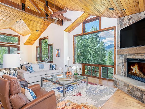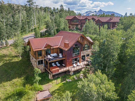 Perched elegantly on a gently sloping hillside above the 14th green, this four bedroom four and a half bath, newly remodeled mountain contemporary home has panoramic views from Gray Head to Ajax Peak and is being offered fully furnished and turnkey. Thoughtfully and efficiently designed, an inverted floor plan allows for single-floor livability while framing dramatic views and natural light from every angle. Replete with meticulous modernization, high end fixtures and finishes, and multiple outdoor spaces, 133 AJ Drive is an immaculate and luxurious embodiment of the Mountain Village lifestyle.