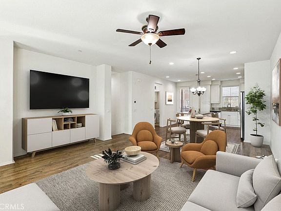 Welcome to 133 Aliso Ridge Loop, a beautifully appointed home in the sought-after Ridge community of Mission Viejo. The entry level offers a private front patio with sweeping sunset, city light, and mountain views, plus a bedroom with an ensuite bath and direct access to the two-car garage. The main level features an open-concept design with laminate wood floors, plantation shutters, and recessed lighting. The living and dining areas flow seamlessly into the chef’s kitchen, showcasing granite countertops, white cabinetry, a spacious center island, and stainless steel appliances, with a door leading to a private balcony. A powder room and full-size laundry room add convenience. Upstairs, the primary suite boasts dual vanities, a soaking tub, walk-in shower, and generous walk-in closet, while a secondary bedroom enjoys its own ensuite bath. The community offers a pool, spa, and playground, all within close proximity to shopping, dining, schools, and parks.