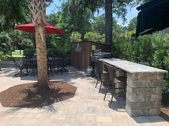 OWNER OFFERS COMPLIMENTARY TRY IT BEFORE YOU BUY IT. Own this recognized, coveted lot and location steps from amenities and across from the park! Beautifully updated pavers, bar, paver wall and walkway, plus irrigation, picture-perfect landscaping and lighting. Accommodates 43' coach and 2 vehicles. Owners absolutely love this lot and location but are retiring from RVing. All furniture, firepit, grill and umbrella as personally seen on site conveys. HHI Motorcoach Resort on the amenity driven south end has everything outside the front gates; shopping, restaurants, groceries, beach, bike paths, trolly, etc.