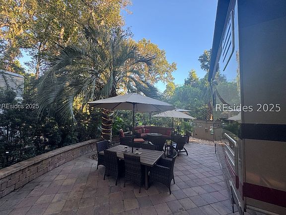PERIMETER RV Lot #281 is BEAUTIFULLY landscaped with a paver pad that can accommodate a 42'+ coach with a tow vehicle. The mature landscaping and outstanding landscape lighting makes this lot the perfect lot for entertaining! Storage shed, table with seating for 6, two adoronkak chairs, sofa and loveseat, and 2 umbrellas will convey with purchase. Head Island Motorcoach Resort is a luxury RV resort consisting of 50 acres of woodland setting accented with lush landscaping settled in the heart of Hilton Head Island and is a short bike ride to Coligny Beach. HHIMR amenities include tennis courts, pickle ball, shuffleboard, swimming pool, hot tub, clubhouse, laundry facilities, fitness center, basketball courts, playground, dog park, Wi-Fi, cable, daily trash pickup, lawn maintenance, water & sewer.