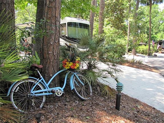 Lot 91 is priced to sell. Mature landscaping with irrigation and lighting creates serene privacy. Lighted paver wall surrounds extra large entertaining area with plenty of room for table and chairs as well as couch, coffee table, lounge chairs and fire pit. Accommodates up to a 42 ft. coach with plenty of parking . Table, chairs, umbrella and shed included in sale. Voted the #1 Motorcoach Resort in America, HHI Motorcoach Resort on the amenity driven south end has everything outside the front gates; shopping, restaurants, groceries, beach, bike paths, trolly, etc.