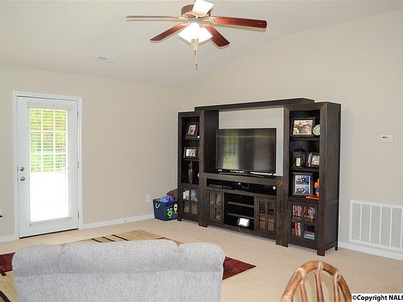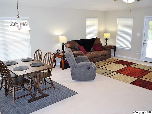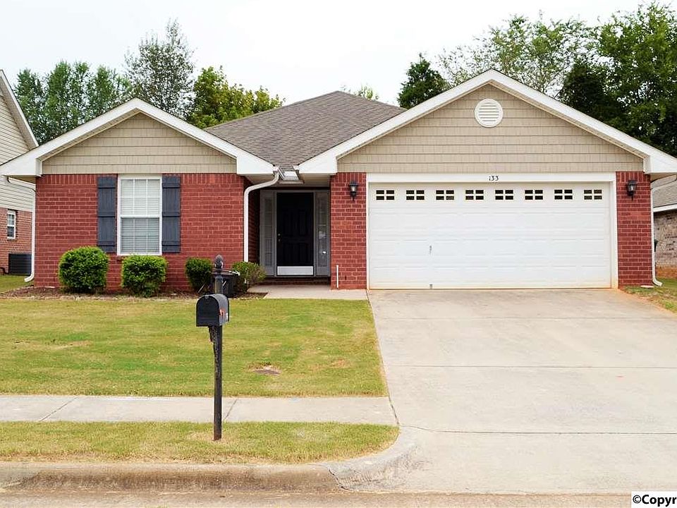 Welcome home! Excellent location in Madison City!!! This cozy full brick home offers 3 bedrooms, 2 full baths, and open floor plan. Great room offers carpet, ceiling fan and 2" window blinds smooth ceilings throughout. Kitchen has stainless appliances, pantry with lots of cabinets and bar area. Also has separate dining area. Isolated master bedroom with ceiling fan, blinds, jetted tub and separate shower and walk in closet. The other 2 bedrooms have carpet, window blinds. All appliances to remain washer & dryer included. 2 car-garage. Outside private backyard backs up to woods. Enjoy fishing at the pond or just a nice walk around the community. This is a must see!