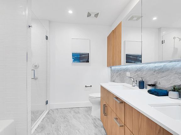 Floor-to-ceiling windowsExterior balconyFive-fixture kohler contemporary bathGlazed ceramic backsplashesWestern exposuresAbundant closet spaceHoned carrara quartz countertops