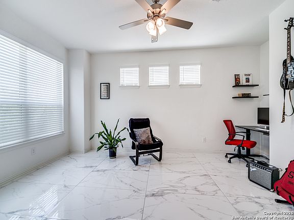 Gorgeous curb appeal + EZ access to all the best stuff! Beautifully modern home has excellent floorplan. Greenbelt. Relax on the back patio, enjoying quiet privacy. Chef's gourmet kitchen has big 5 burner gas cooktop, granite counters, sleek backsplash, huge pantry, desk nook, large island... All flowing seamlessly to the GreatRoom w/ its soaring ceilings. Superb for entertaining. Bask in all the natural lite. Luxurious primary ste - separate from spacious secondary bedrms. Ample office w/double glass doors just off entryway. Extensive 2ft x 4ft tile flooring. 1.5 story. Big gameroom. Lg utility rm; TX basement; Ceiling shelving in garage; CA modern style front door and garage door. Long driveway for extra parking spaces. N'hood pool nearby. Keep fit on the walking trails. Enjoy life in the sought after city of Boerne, with its award winning schools, upscale + quaint downtown, River Road trails... plus easy access into SA or out to the flourishing TX Wine Country. Explore the amazing library, Town square "Market Days", Holiday parades, "Dickens on Main" and so much more. This builder won the "Houzz" Best Product Design Award. Nearly new + Energy efficient. What a fun home to decorate for the holidays! Much easier egress / ingress than other Boerne communities. Neighborhood's positioning w/ quick access roadways to I-10 offers short commute to major employers, high end shopping, airports, medical centers, golf courses, etc.