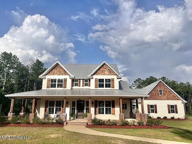 Welcome Home to 133 Big Buck Ridge that is tucked away on over 25 private acres in the hills of Rankin County. This beautiful 5 bedroom, 3 bathroom home, built just a few years ago features a very smart floor plan. Greeted by a gorgeous entry way, this home offers a room to the left of the foyer that is used as an office now, but can be used in many other ways. To the right of the foyer is the formal dining room with gorgeous wainscoting walls. The open floor plan features High ceilings, a huge island in the kitchen with plenty of seating, a breakfast area, a large 6 burner gas stove and oven, and a huge apron, farmhouse sink surrounded by lovely custom cabinets. The refrigerator will stay with the home. The large living room has a gas fireplace with views of the beautiful grounds. The primary bedroom is spacious, and features a lovely bathroom with double vanities, a walk in shower, and a soaking tub. The primary bedroom closet also serves as a tornado shelter/safe room. There is a guest bedroom downstairs and a full guest bathroom as well with a tub/shower combo. Upstairs there are three additional bedrooms and another full bathroom. Each bedroom has a large closet with custom shelving and built-ins. One of the upstairs bedrooms is HUGE and would make a great game room or playroom. The attached three car garage has a large utility room for plenty of storage. The laundry room and pantry/small appliance room is located in the hall coming from the garage leading into the kitchen. The covered back patio has a cozy gas fireplace as well with plenty of room for additional seating. The home has a security system with cameras, that is hard wired, and has been paid for until the end of July 2025. The lot is a total of 25.58 acres and it is completely wooded. There are trails throughout the property and will offer you ultimate privacy as well as recreational opportunities. This truly is a unique opportunity, don't miss out on this gem!