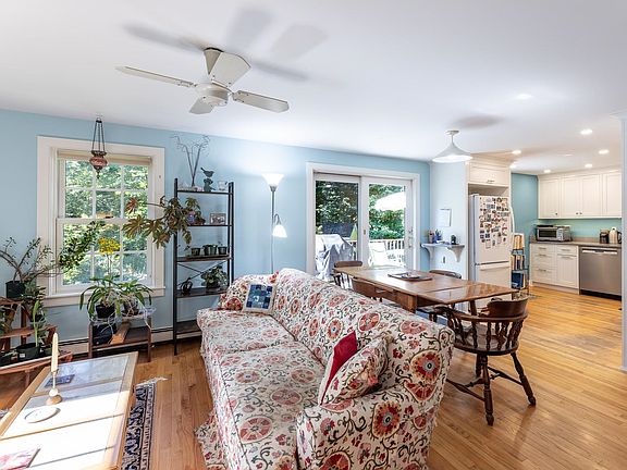 This charming 3-bedroom, 2-full bathroom house offers a perfect blend of classic construction and modern updates. Built in 1981 by the local builder William Porter, the property has been nicely maintained and updated. In 2001 new windows, doors and deck were installed, significantly enhancing energy efficiency and curb appeal. The kitchen was updated in 2022 with Crown Point cabinets. Appliances are included - an electric range with induction cooktop (2022), refrigerator, dishwasher (2022), washer and dryer. The sunny and bright first floor has flexible layout with great spaces for both a living room and large family room in addition to the kitchen and dining rooms. The full unfinished basement provides great storage space and offers the potential for future expansion. Located on a lovely scenic road, this home provides a peaceful retreat while still being conveniently close to local amenities and just 2.3 miles to Dan & Whits!