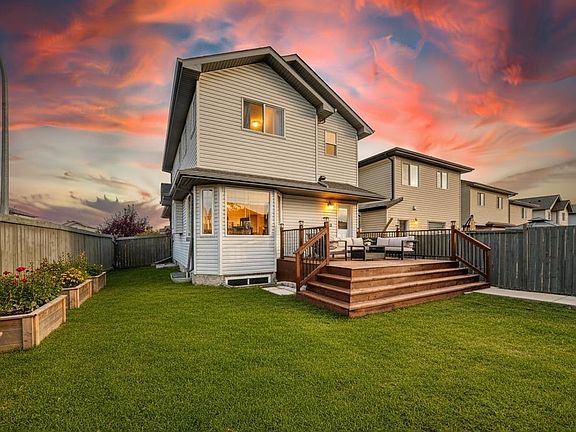 CORNER LOT | MASSIVE GARAGE | MODERN UPGRADES Welcome to this well-maintained 3 bed, 2.5 bath family home on a rare oversized corner lot in Brintnell! This bright 2-storey boasts a spacious open layout with hardwood floors, a cozy front living room, and a large eat-in kitchen with breakfast nook. Upstairs features 3 comfortable bedrooms including a primary suite with 4-piece ensuite and walk-in closet. The 28x26 detached garage is a dream for car lovers, hobbyists, or anyone needing extra space. Recent upgrades include: new shingles (2023) with 50-year warranty, AC, tankless water heater, high-efficiency furnace (2021), water softener & plumbing upgrades (2022), insulation (2024), and a new deck (2020). The unfinished basement is bathed in natural light and offers secondary suite potential. Fully landscaped and fenced, steps to the park, transit, schools, and Manning Town Centre—with quick access to Anthony Henday. (Photos that have been digitally staged or modified.)