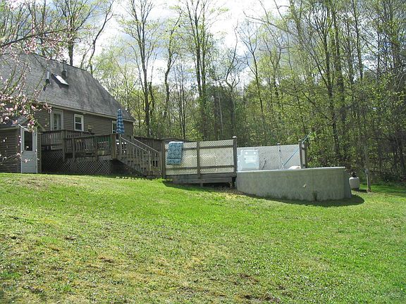 Located on a quiet town maintained gravel road. Short walk to Eliza Adams gorge. Home has 2 options for heating. Oil fired furnace or pellet furnace. Large eat in kitchen. Music room can be a 4th bedroom. Deck out back connects to an above ground pool. Garage is oversized with storage above. Detached workshop or storage building. Needs a bit of interior updating. Great place to raise a family.