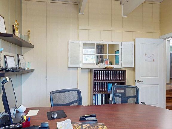 Live/work opportunity! 1,890 sq ft commercial space on a 8,712 sq ft lot. High visibility location with traffic counts of up to 13,315 vehicles per day. Fiber optic internet. Downstairs has 2 baths, 1 is ADA compliant. The space can include desks and existing furnishings ready for immediate use. The property also features a 480 sq ft upper unit with its own kitchenette and bathroom, accessible via a private exterior stairway; ideal for rental income or a separate workspace or living space. The upper unit has its own fiber optic internet connection, though utilities are shared. Perfect for business owners or investors seeking flexibility, functionality, and a strategic location.