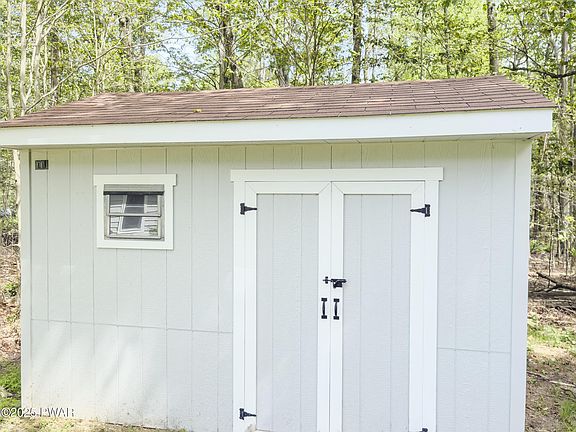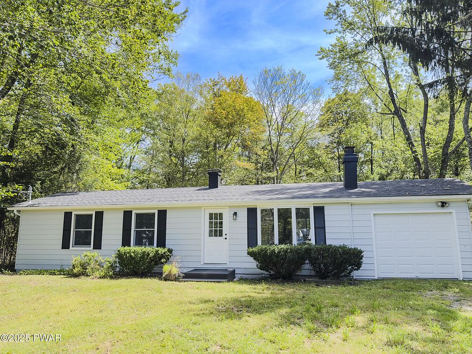 PRIVATELY SET + ALL NEWLY RENOVATED 3 Bedroom, 1 bath, 1 car heated and sheetrocked garage, on 2 lots totalling nearly an acre of property and BACKS TO STATE LAND! This home sweet home has been completely gutted and remodeled! Light & bright open floor plan w/ vaulted beamed ceilings, eat-in kitchen w/ beautiful modern cabinetry and black granite counters, spacious dining area, propane living room fireplace, trendy bath w/ glass shower doors, and HUGE 3-Season sunroom to enjoy your completely private back yard! Natural stone walls border the back of the property near the state land. Storage shed for additional space AND BRAND NEW SEPTIC SYSTEM!!! NEW 200 AMP ELECTRIC SERVICE meter and panel also. Nothing left to worry about except when to move in. Sweetly set down a quiet country road, yet minutes to grocery, gas and the highway. Close to Lake Wallenpaupack Ledgedale access area, Promised Land State Park, and all local Poconos activities. Realtor owned.