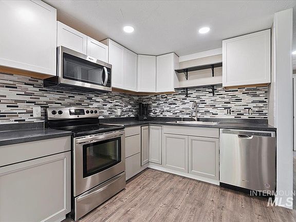 NEW PRICE of $450,000 for this turn key Cascade home! Nestled in the trees on a city maintained road this split-level, 4 bed, 2 bath home on half an acre is ready for you to call home. Completely updated with new flooring, paint, light fixtures and more! Cozy up to the gorgeous stone fireplace this winter after pouring your morning coffee in the brand new kitchen with stainless steel appliances. Two bedrooms, full bath and laundry upstairs and 2 beds, full bath, storage pantry with built-in shelving plus garage access downstairs. Additional storage room is adjacent the garage. Prime location off the highway yet close to town for convenient trips to the store and easy access to all the recreation Valley County has to offer like fishing, boating, hiking, snowmobiling, golfing and more!