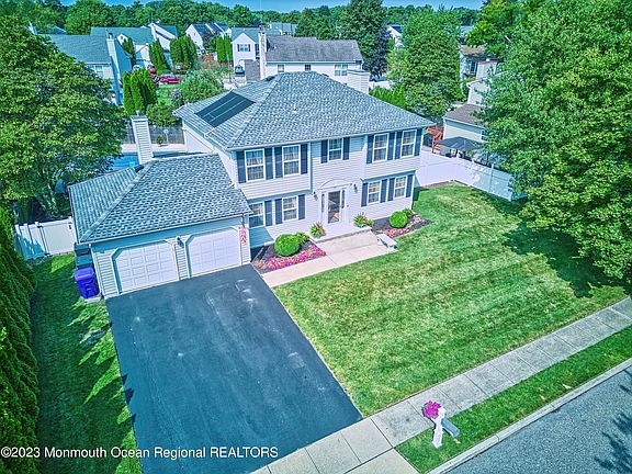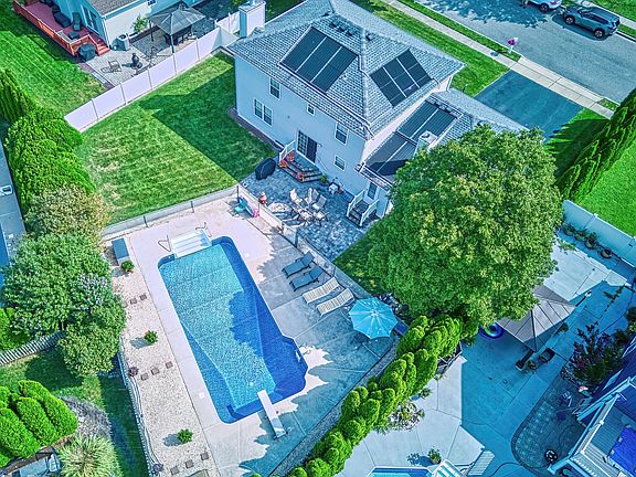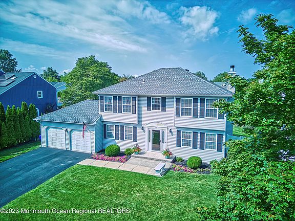 Well Maintained Midstreams Center hall colonial. Boasting 4 bedrooms 2.5 bathrooms, and a spacious 2-car garage. Family room with wood burning fireplace . Kitchen has breakfast area Oak cabinets , Granite counter tops. SS appliances, Dishwasher 3/2023. Off Kitchen is a Mud room w/ Washer dryer. Formal Dining rm with Parquet wood floors. New beautiful carpeting 7/2023 in all bedrooms. This home offers an unfinished basement, allowing for your personal touch. Sprinklers front and back yard. Awesome gray paver patio. Enjoy the beauty of owned solar heated in-ground pool that enhances the backyard oasis.